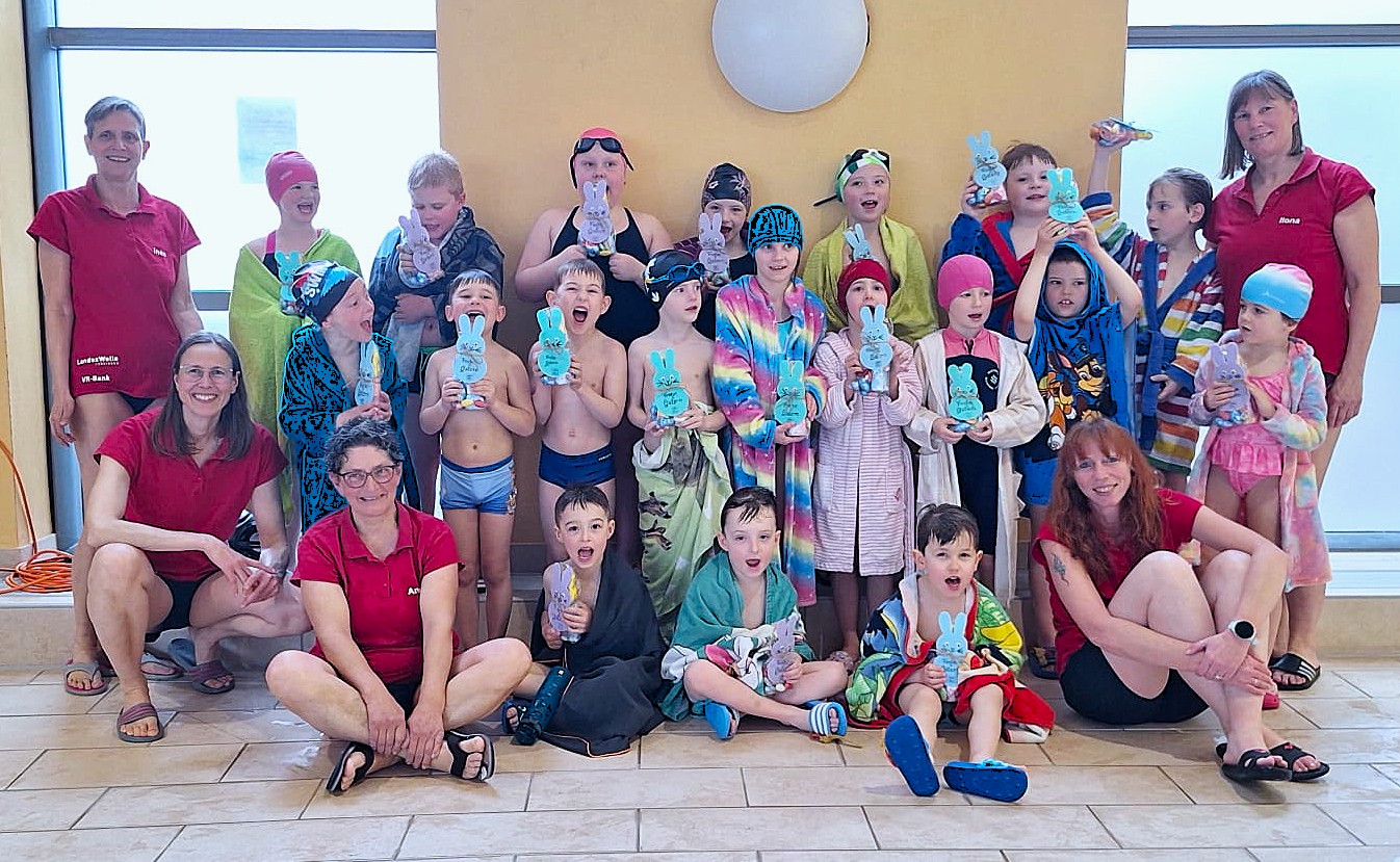Die Kinder unserer Seepferdchen-Gruppe wurden am Montag, dem 30. März, kurz vor Ende ihrer Übungsstunde von der Nachricht überrascht, dass wohl jemand den Osterhasen im Schwimmbad gesehen habe. Neugierig spitzten sie die Ohren und schauten fragend in die Runde. Schnell ging es dann auf die Suche nach den Osternestern. Groß war die Freude über die kleinen Nester, die der Osterhase tatsächlich für die fleißigen Schwimmschüler versteckt hatte. Keiner der eifrigen Sucher ging leer aus. Damit geht der erste Part des aktuellen Kurses, der im Mittelpunkt der Wassergewöhnung gestanden hat, zu Ende. Der Kurs wird dann nach den Ferien, am Montag, dem 20. April, wieder fortgesetzt.